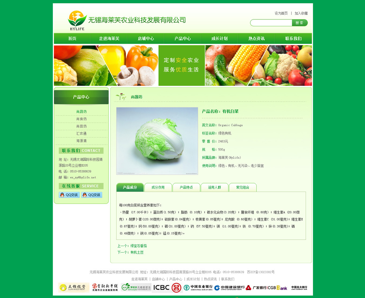 無錫海萊芙農(nóng)業(yè)科技發(fā)展有限公司,由生產(chǎn)體系(生態(tài)農(nóng)業(yè)示范基地+有機農(nóng)業(yè)技術監(jiān)督服務站)、渠道體系(便民社區(qū)店、綠優(yōu)優(yōu)有機生活館、匯農(nóng)通便民支付專賣店、海源清樂活館)、交易體系(ACBOT大宗農(nóng)產(chǎn)品交易所)、網(wǎng)絡體系(綠優(yōu)優(yōu)網(wǎng)絡科技有限公司)、教育體系(海萊芙商學院)和慈善體系(頡誠基金)六大體系組成。