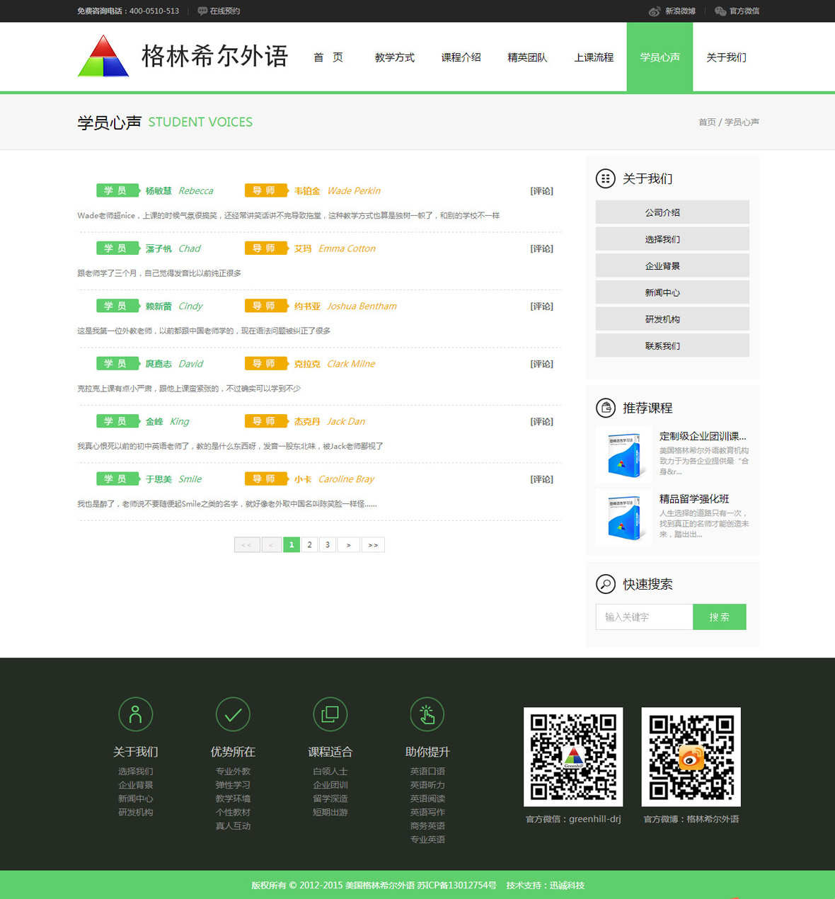 格林希爾(中國(guó))的所有學(xué)習(xí)中心都擁有世界一流的現(xiàn)場(chǎng)和在線學(xué)習(xí)環(huán)境,為學(xué)員提供定制的英語(yǔ)學(xué)習(xí)課程。美國(guó)格林希爾為廣大學(xué)員鋪就成功之路!