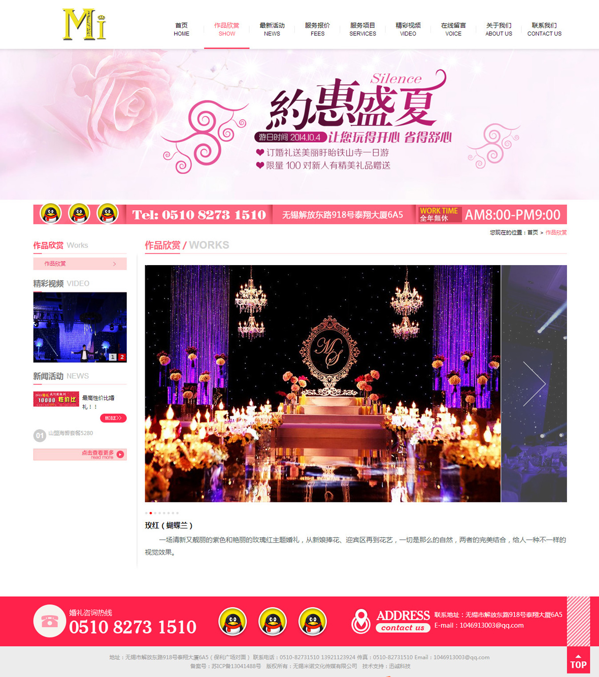 訪問(wèn)網(wǎng)站無(wú)錫米諾文化傳媒有限公司對(duì)婚慶事業(yè)有著自己獨(dú)一無(wú)二的追求,憑借著多年的婚禮策劃經(jīng)驗(yàn)和對(duì)婚禮時(shí)尚潮流的敏銳嗅覺(jué)在婚禮創(chuàng)新方面有著自己獨(dú)特的研究跟見(jiàn)解。全身心投入到每一場(chǎng)婚禮的制作,將新人不同的個(gè)性文化,家庭社會(huì)背景,戀愛(ài)經(jīng)歷巧妙的結(jié)合在一起,給新人一場(chǎng)終生難忘的婚禮,使得他們?cè)诨槎Y的浪漫中去感悟幸福生活的真諦。